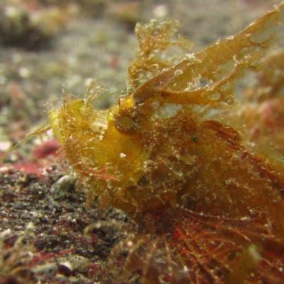The Ambon scorpionfish is only 6-12cm long, it is shaggy, and the most distinguishing feature is the large growths above eyes, making them look a bit like Fu-Manchu!