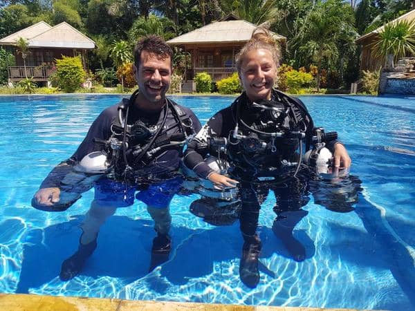 DetailsOur Michelle, our divemaster trainee tried out a sidemount configuration in the pool with Instructor Markus in Bunaken today. It was a lot of fun to do some “out of air” skills, taking of one tank and continue diving with the remaining tank. We also did some finning techniques. The sidemound configuration originated amongst dry…