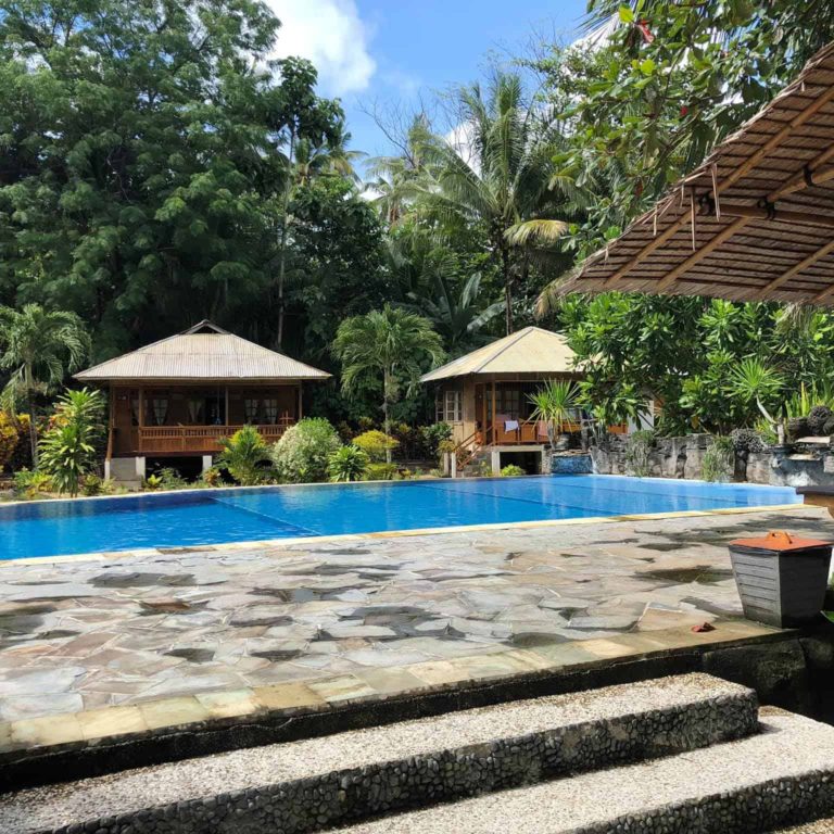 As the island is remote and the options are limited, we have our own tropical-island resort right by the beach. Two Fish Bunaken Resort is based in beautiful garden surroundings, with cottages that surround a fantastic 18m swimming pool, and we only cater for a maximum of 24 divers which means that personal attention is guaranteed.